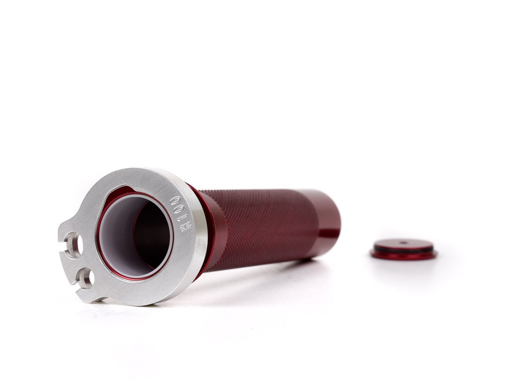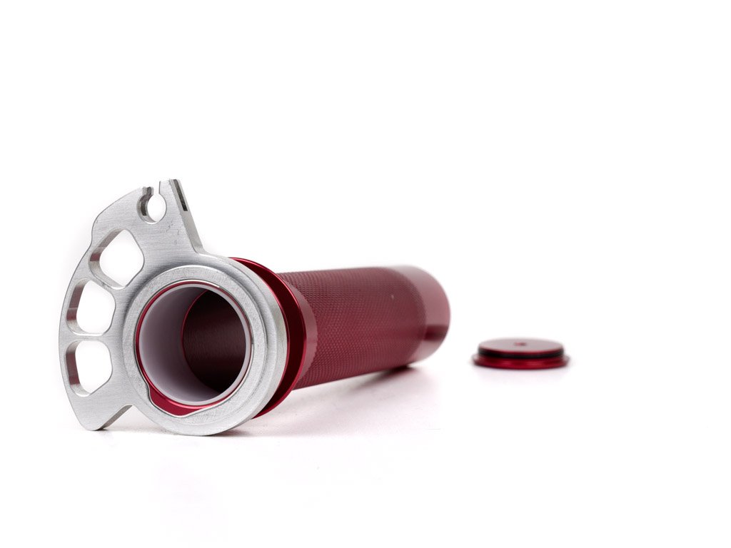 Replace your stock Sherco plastic throttle tube with USA-machined aluminum and Delrin bushings.