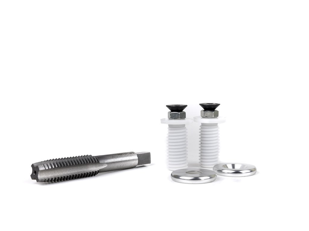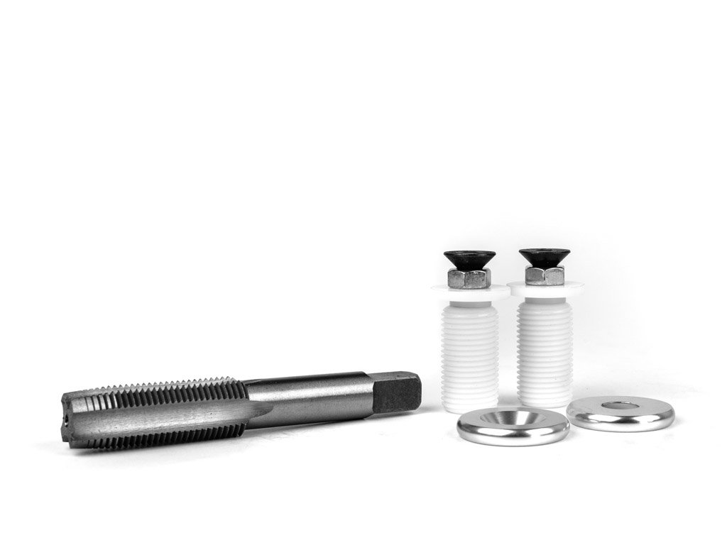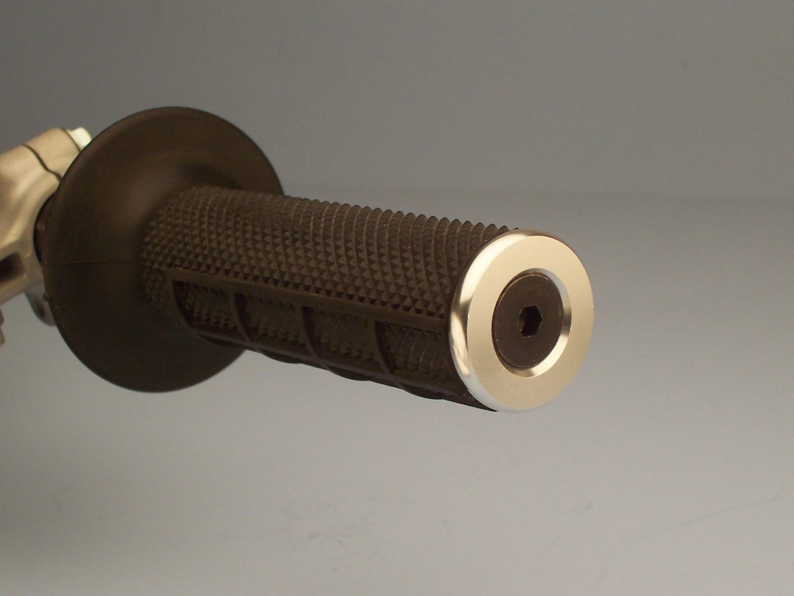 The competition’s grip protectors all have the inferior bolt-nut-rubber hose mounting solutions. Their bolt need only loosen about 1/8 turn and the wedges lose all strength and the grip protectors simply “pop out”. The G2 Grip Protectors come standard with the G2 Threaded Mounts. By tapping the inside of the handlebar, a threaded piece can be inserted to securely bolt the grip protector to the handlebar end.